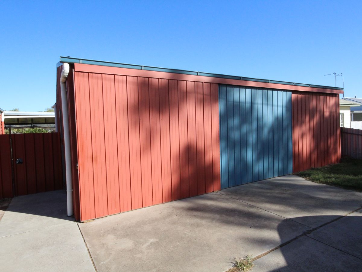 Once a church relocated from Pimpinio, now a quirky home with many features, that offers a great family environment. Comprising 4 bedrooms, two upstairs, two downstairs including master with WIR's, BIR's in other 3 bedrooms. The massive lounge ( Existing church ) has wood heating and new carpets. The home is cooled by a evap cooling unit. There is a small 2nd living area upstairs between bedrooms.